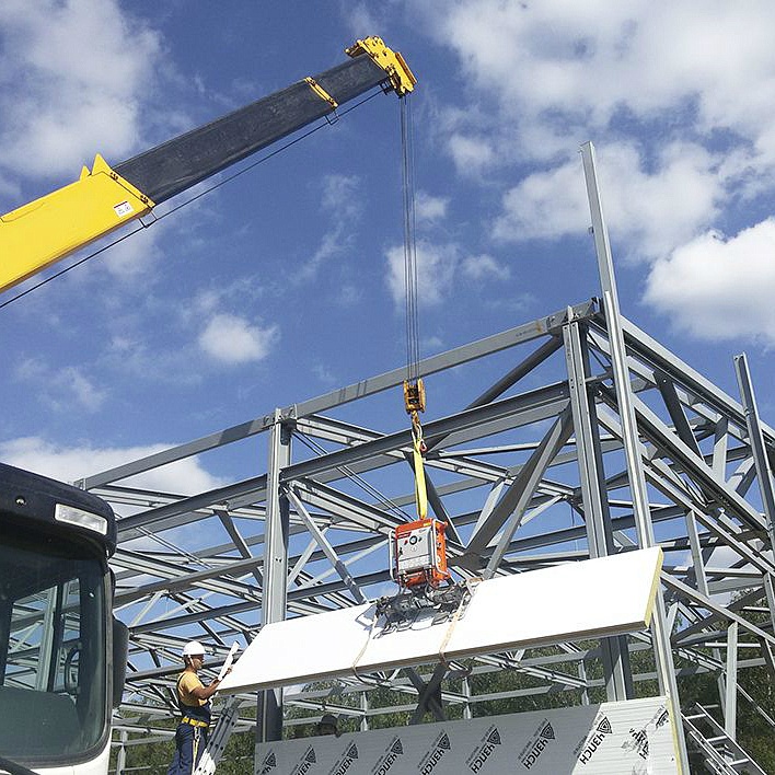 С помощью вакуумных захватов можно быстро и качественно провести монтаж сэндвич-панелей любой сложности.