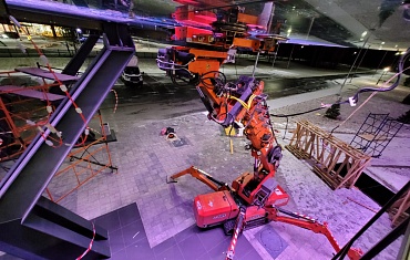 Стекла размером 3 на 6 метров смонтировали с помощью вакуумного захвата ARLIFT-F/R-1500. Монтаж проходил на высоте до 40 метров