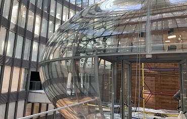 Наши объекты - Сложный монтаж сферического стекла техникой Арлифт