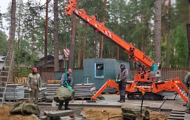 Мини-кран SPX527 помог выполнить работы по ландшафтному дизайну в одном из коттеджных поселков Ленинградской области.