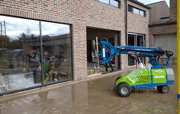 Вакуумный захват Arlifter GS-850 смонтировал несколько крупногабаритных стеклопакетов при плохих погодных условиях на строящейся базе отдыха.