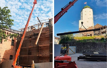Мини-кран SPX527 Арлифт произвел ряд деликатных работ в средневековом рыцарском замке.