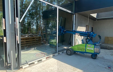 Мини-кран SPX527 и вакуумный захват Arlifter GS-850 помогли в остеклении частного дома в одном из пригородов Санкт-Петербурга.