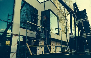Монтаж сэндвич-панелей и стекол Юлмарта.